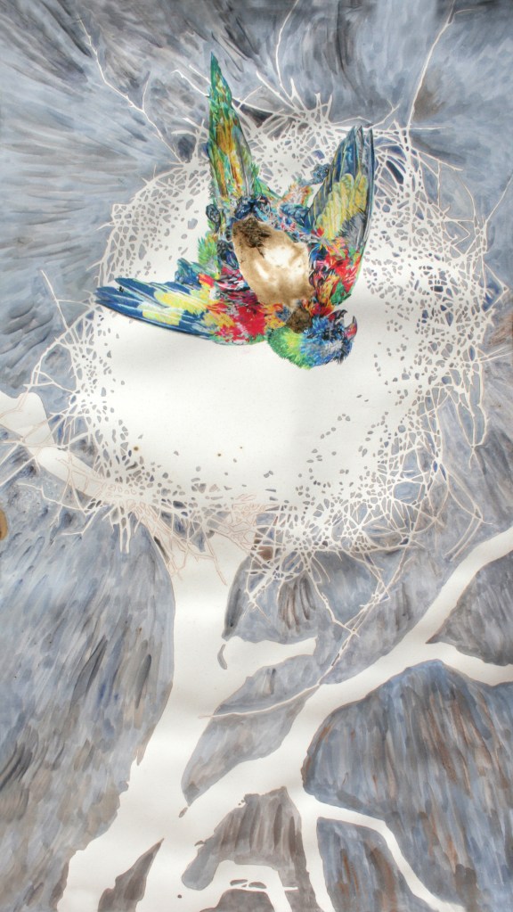 I finally completed a lorikeet shroud on paper I had created at Bundanon during my residency. It took 27 hours, the chalk pastel being particularly time consuming.