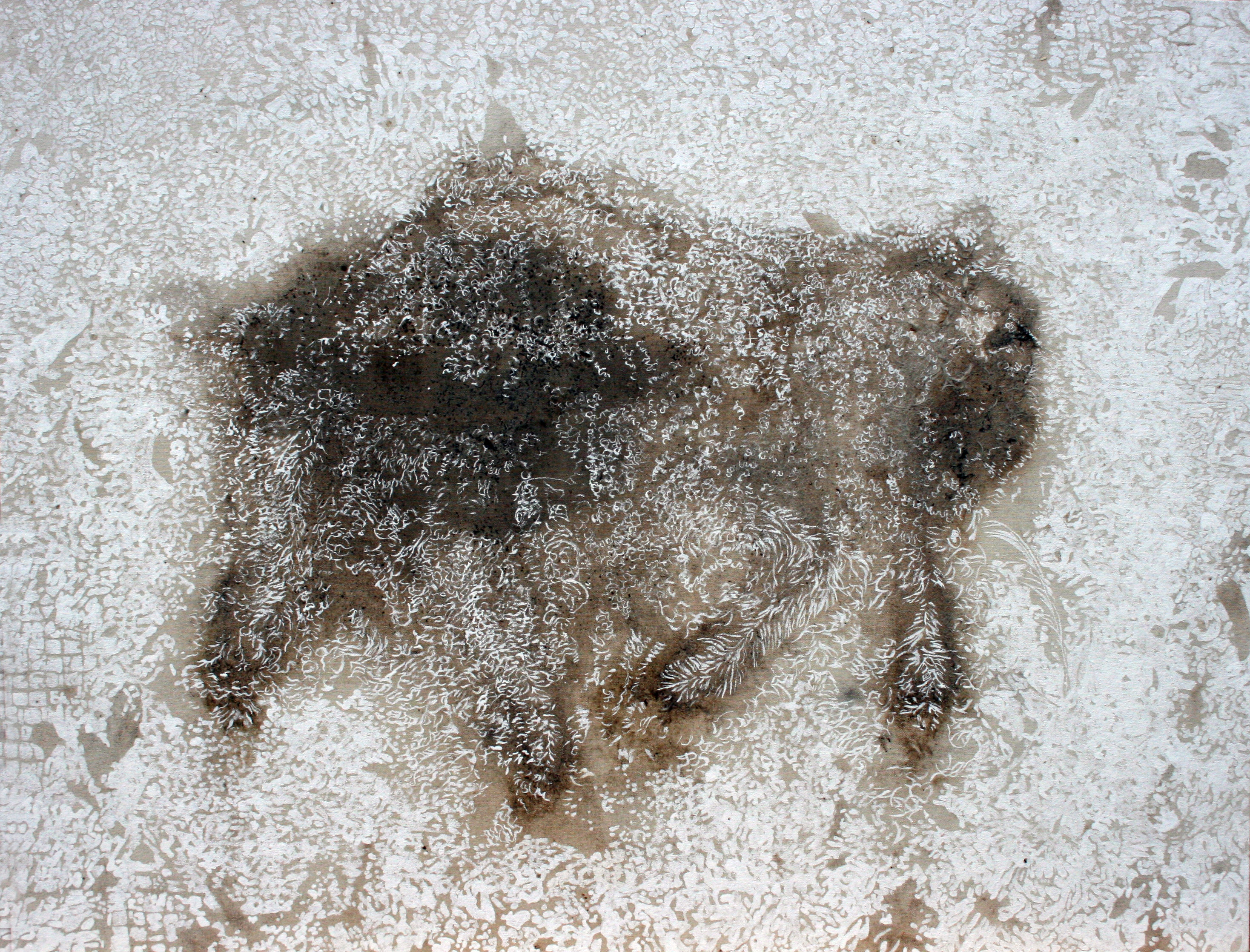 This film records my decision to remove the crow body from the shroud revealing the shadowy stain beneath. I also decide to leave the butcher bird’s body stuck to the canvas. Although I found the crow’s body beautiful, I could see the objectification once the work hung in the gallery. The presence of the crow shroud stain however counteracts the objectification of the butcher bird remains due to visual subservience to the crow who feeds on death.