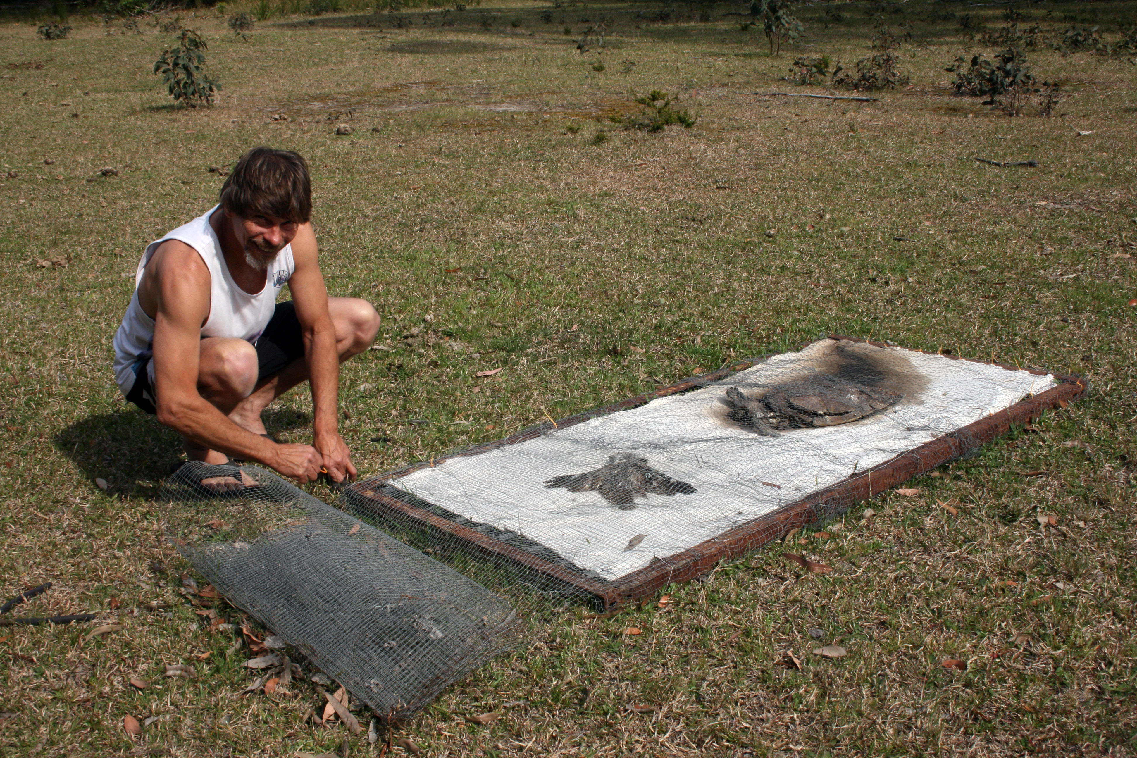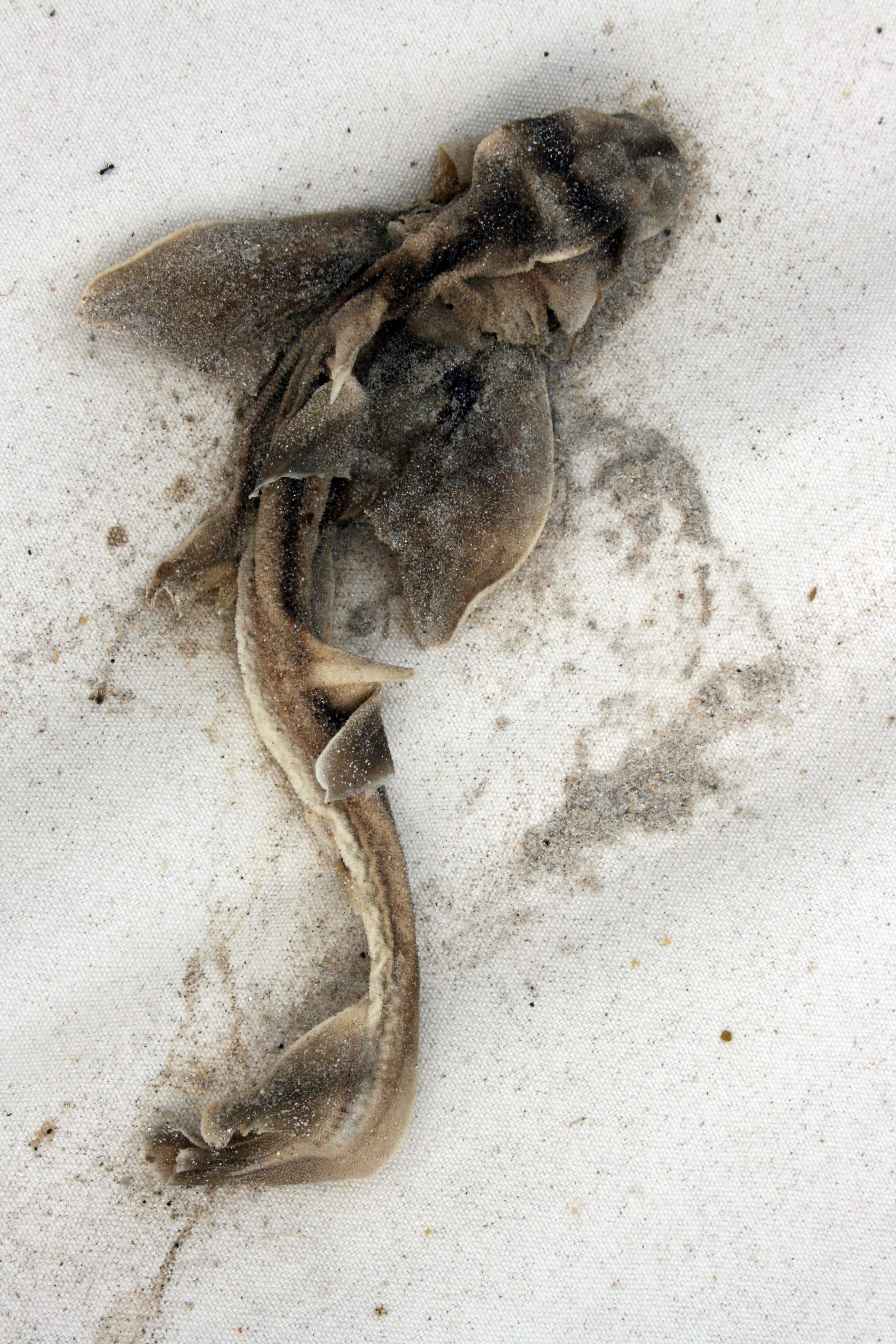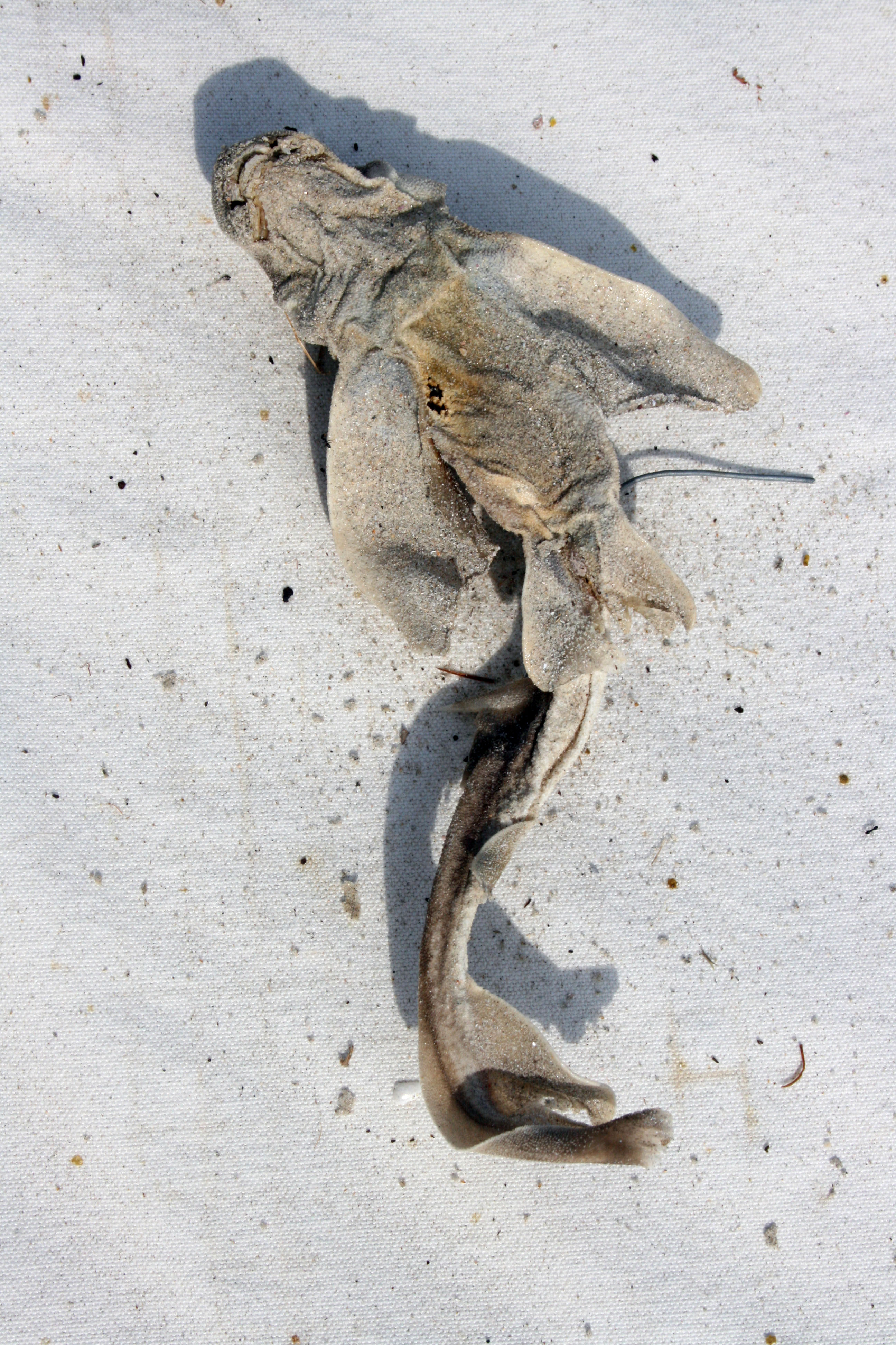 Last Sunday Darren and I drove to Worrowing in our old ute to pick up the shroud set featuring the turtle, baby Port Jackson shark, stingray and kookaburra. A horse came to check us out and ran away snorting and shaking its head when I shook out the turtle shroud. Must have got a diabolical whiff of it! At home I put them in a vinegar bath before hanging them out to cure for a few weeks. The only body I kept was the cute little baby shark. The rest I placed under a large eucalyptus tree.