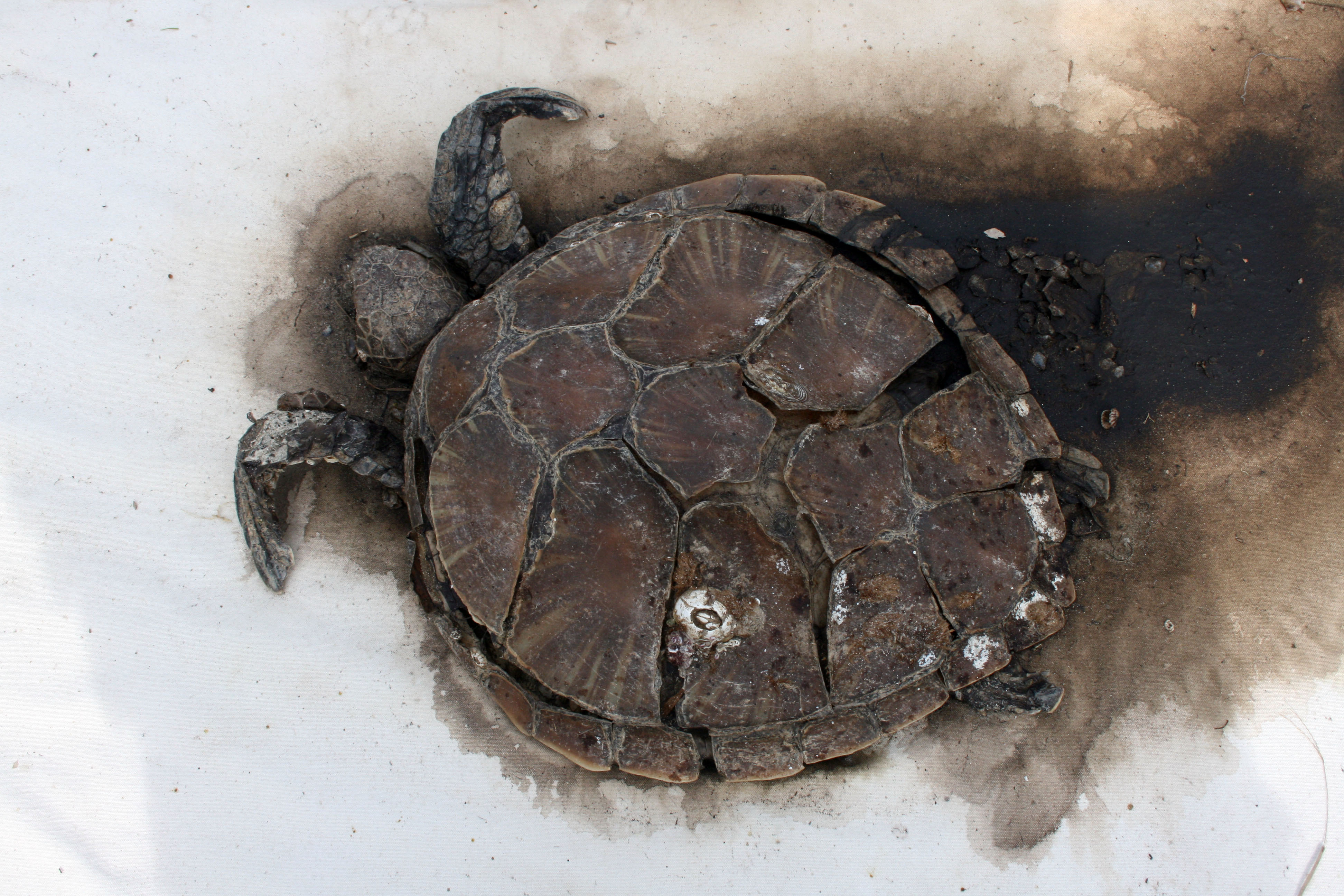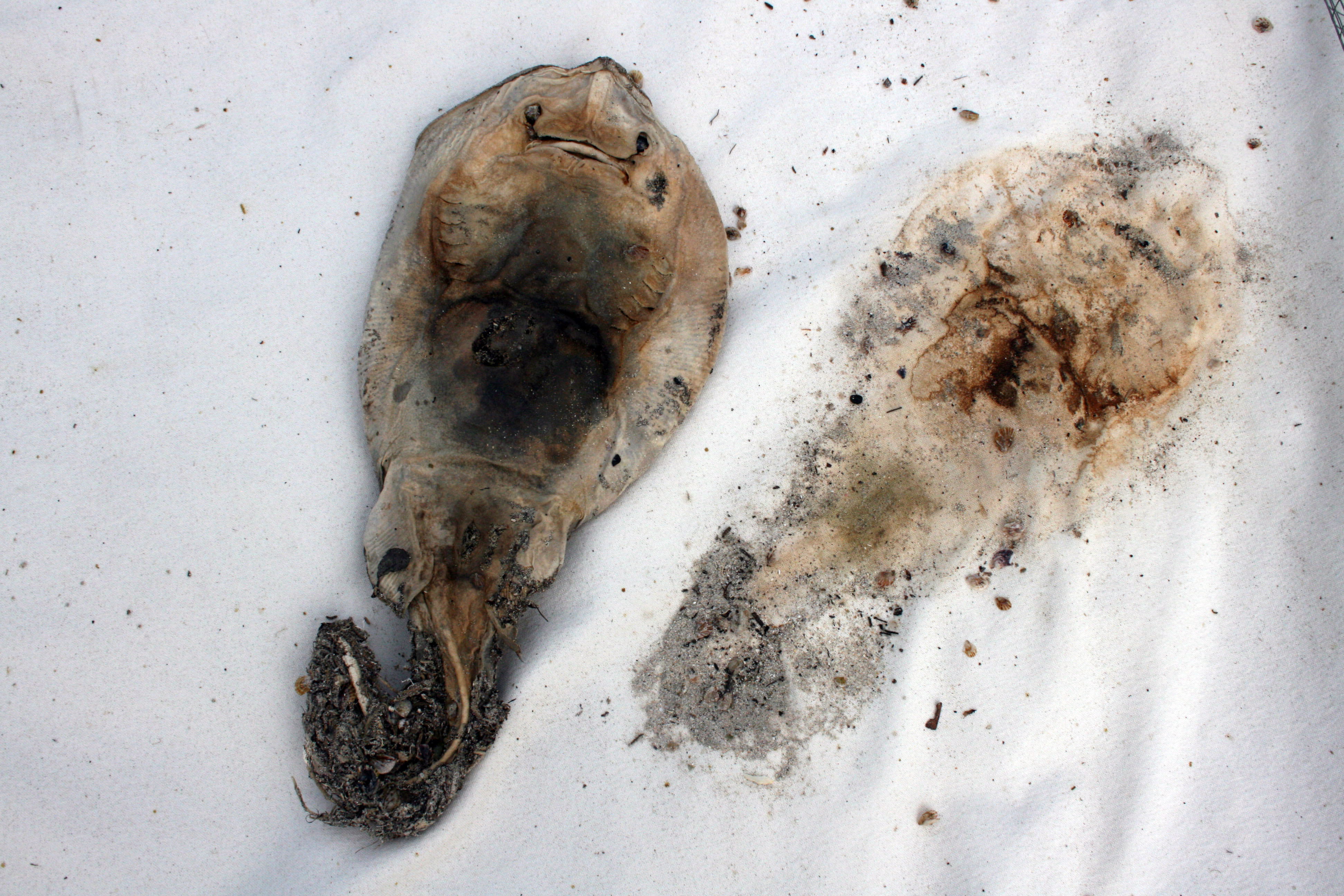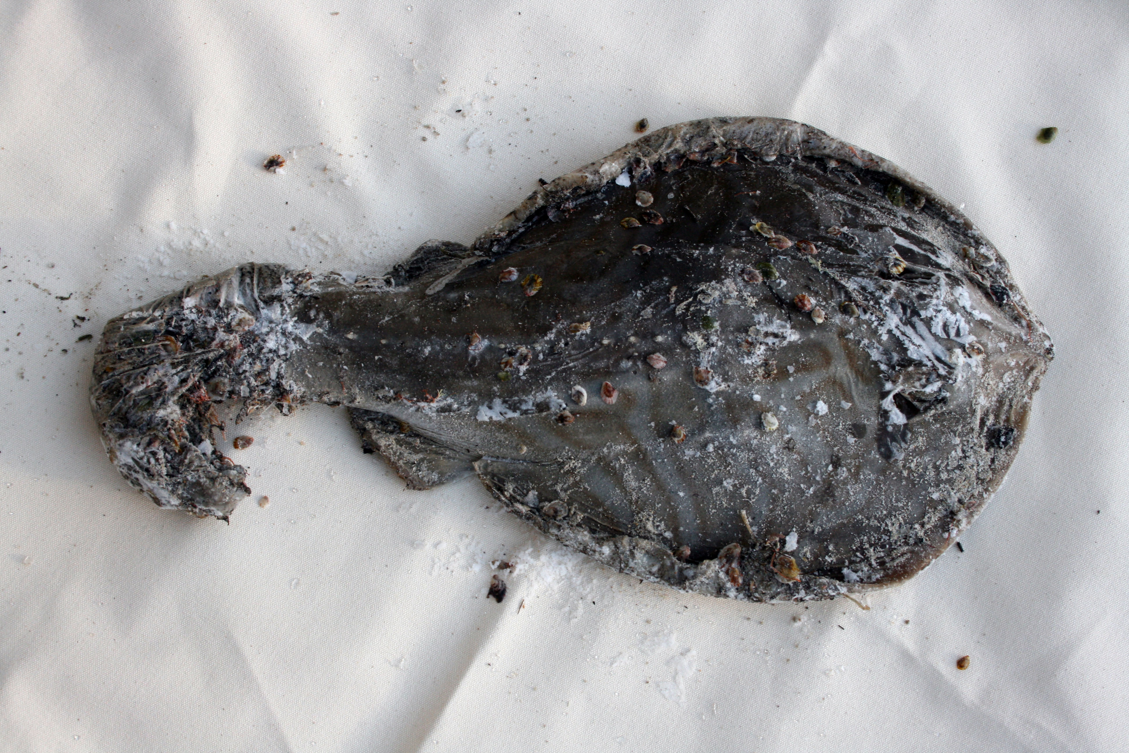 Last Sunday Darren and I drove to Worrowing in our old ute to pick up the shroud set featuring the turtle, baby Port Jackson shark, stingray and kookaburra. A horse came to check us out and ran away snorting and shaking its head when I shook out the turtle shroud. Must have got a diabolical whiff of it! At home I put them in a vinegar bath before hanging them out to cure for a few weeks. The only body I kept was the cute little baby shark. The rest I placed under a large eucalyptus tree.