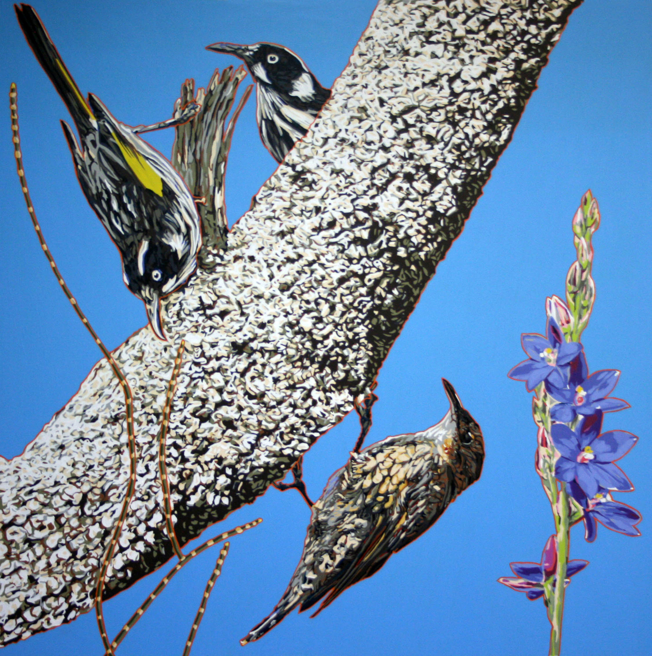 I exhibited the following 5 Bherwerre panels in the Sandholme Salon Show for SeeChange 18. The 3rd Stage of the Bherwerre Mural Project received funding from the Shoalhaven Arts Board while the entire project would not be possible without my project partners BBCR Shed who installed the panels at Sandholme.